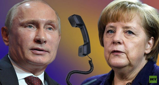 بحث الرئيس الروسي فلاديمير بوتين خلال اتصال هاتفي مع المستشارة الألمانية أنجيلا ميركل الخطوات اللازمة لتطبيع الوضع في جنوب شرق أوكرانيا وإيصال المساعدات الإنسانية الروسية إلى المحتاجين.