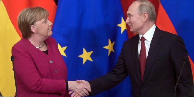 بحث الرئيس الروسي فلاديمير بوتين والمستشارة الألمانية أنجيلا ميركل تطورات الأوضاع في سورية وليبيا مؤكدين ضرورة وقف إطلاق النار في ليبيا والإسراع في حل الأزمة فيها.