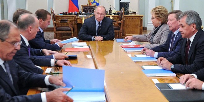 بحث الرئيس الروسي فلاديمير بوتين اليوم مع الأعضاء الدائمين لمجلس الأمن الروسي الوضع في سورية.