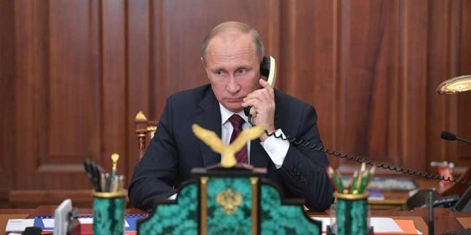 بحث الرئيس الروسي فلاديمير بوتين مع رئيس النظام التركي رجب طيب أردوغان خلال اتصال هاتفي اليوم الوضع في سورية.