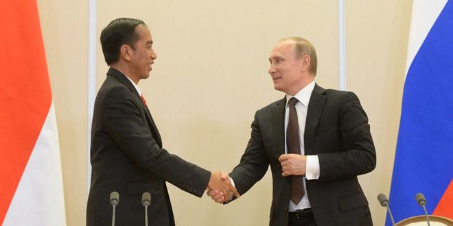 من جهته أكد الرئيس الإندونيسي اهتمام بلاده بإقامة استثمارات روسية في المشاريع الضخمة في بلاده بمجالات الاقتصاد البحري وتطوير البنى التحتية داعياً نظيره الروسي لزيارة اندونيسيا.