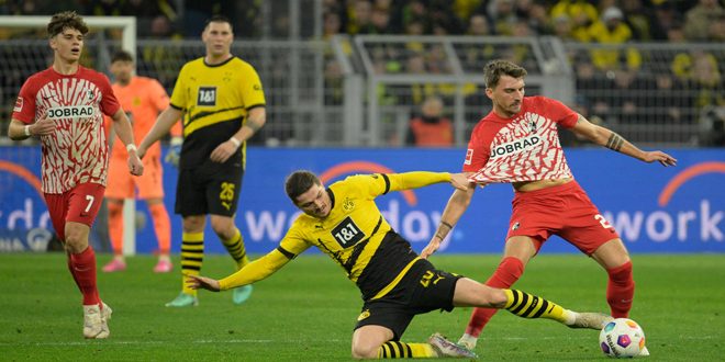 فاز فريق بوروسيا دورتموند على ضيفه فرايبورغ بثلاثة أهداف دون مقابل في المباراة التي جمعتهما ضمن منافسات الجولة الحادية والعشرين من الدوري الألماني لكرة القدم.