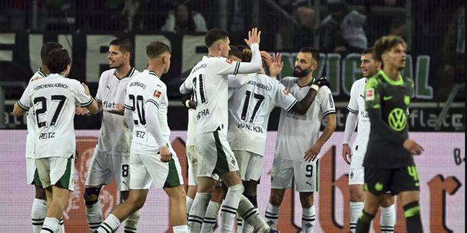 فاز فريق بوروسيا مونشنغلادباخ على ضيفه فولفسبورغ بأربعة أهداف دون مقابل في المباراة التي جمعتهما ضمن منافسات الجولة الحادية عشرة من الدوري الألماني لكرة القدم.
