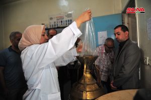 واثناء سحب عينات من القمح لفحصها قبل استلامها أوضح خبير الصحة نشأت الشايب أن العينات تسحب من القمح المعبأ ضمن الأكياس وتؤءخذ للغرفة السرية وبعد تجهيزها وفرزها تذهب لخبير التحليل لتحديد درجة المواصفة لافتا إلى أن أقماح هذا الموسم تنوعت جودتها بين الجيد والوسط.