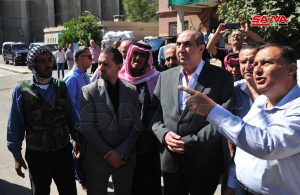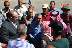 محافظ ريف دمشق المهندس معتز أبو النصر جمران وخلال جولة له اليوم للاطلاع على عمليات حصاد ودرس القمح في حقول الدرخبية وآلية استلام وفحص الأقماح في صومعتي السبينة والكسوة استمع من الفلاحين إلى الصعوبات والمشاكل التي تعيق عملهم ليصار إلى حلها وفق الإمكانيات المتاحة.