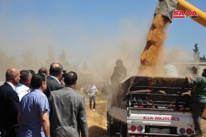 تتواصل خلال الفترة الحالية عمليات حصاد محصول القمح في أراضي ريف دمشق حيث يعمل المزارعون على نقل أقماحهم إلى الصوامع المنتشرة في عدة مناطق بالمحافظة وتسليمها للمؤسسة السورية للحبوب التي اتخذت بدورها جميع الإجراءات اللازمة لتسهيل عملية التسليم على الفلاح بعد فحص وتدقيق ومعاينة حجم الحبة استعدادا لتقدير واستلام قيمها المالية الحقيقية من المصرف الزراعي.