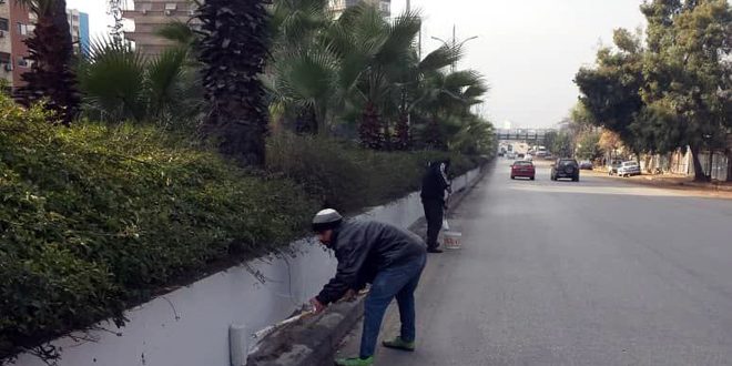 تتابع ورشات مديريتي الصيانة والحدائق في محافظة دمشق أعمال تأهيل وتجميل مدخل دمشق الشمالي، بدءا من البانوراما وصولاً إلى نهاية أوتوستراد العدوي.