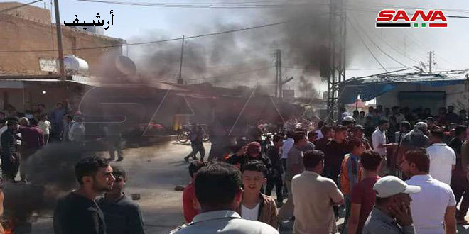 ونقل مراسل سانا عن مصادر أهلية قولها إن الأهالي تظاهروا في ساحة بلدة تل حميس احتجاجا على ممارسات “قسد” في ظل تحكم تلك المجموعات المدعومة من قبل قوات الاحتلال الأمريكي بمقدرات ومفاصل الحياة اليومية.
