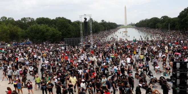 وتأتي هذه المظاهرة في ذكرى مسيرة عام 1963 التي ألقى فيها زعيم الحركة المطالبة بالحقوق المدنية للأمريكيين من أصل أفريقي مارتن لوثر كينغ خطاباً تاريخياً معروفاً باسم “لدي حلم”.