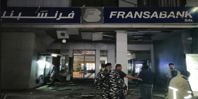 ومن جهة أخرى انفجرت قنبلة قرب أحد المصارف في شارع رياض الصلح في مدينة صيدا ما أدى إلى تحطم واجهته الزجاجية والسقف المستعار حيث حضر عناصر من القوى الأمنية إلى المكان وفتحوا تحقيقا لتحديد هوية الفاعلين.