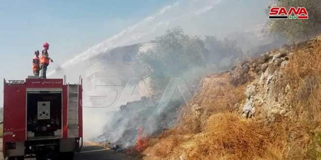 وذكر مراسل سانا من المكان أن الحرائق اقتربت من منازل المواطنين وأن فرق الإطفاء والأهالي يحاولون السيطرة عليها.