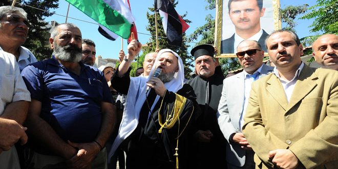 تجمع جماهيري بالدويلعة تنديداً بالعدوان الأمريكي على موقع للجيش العربي السوري بدير الزور