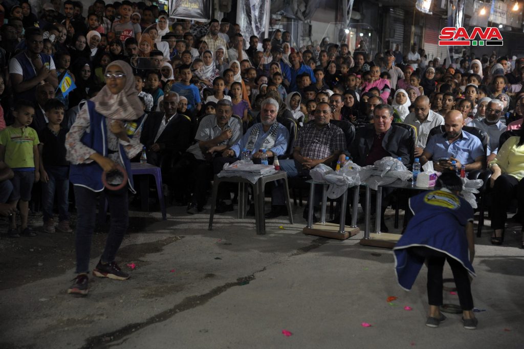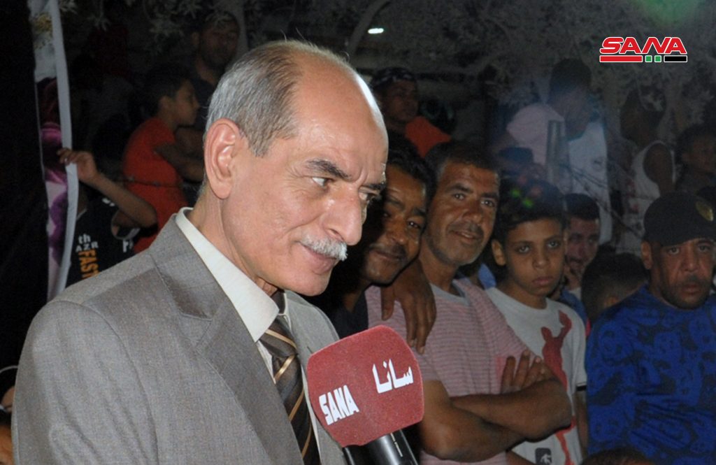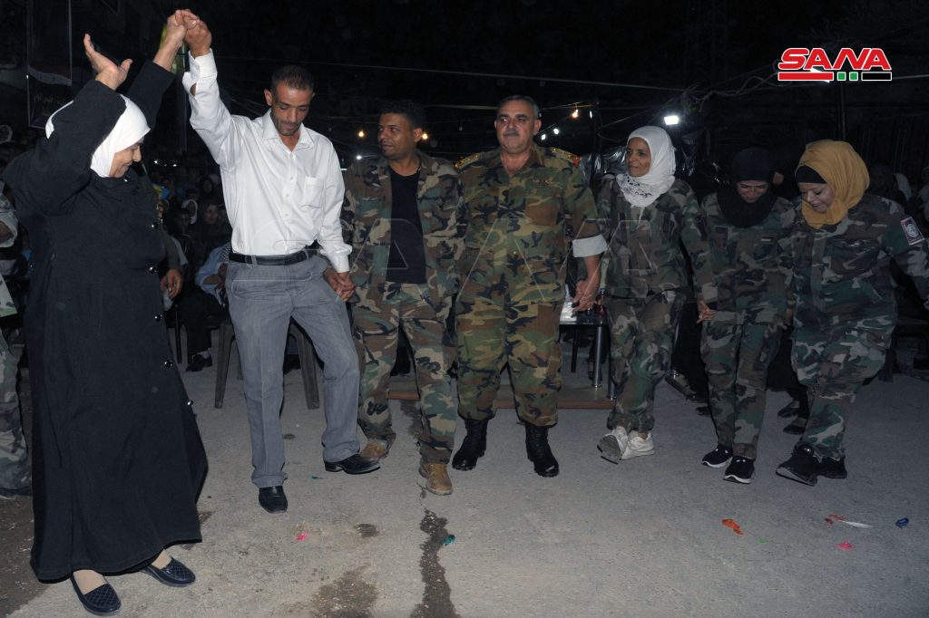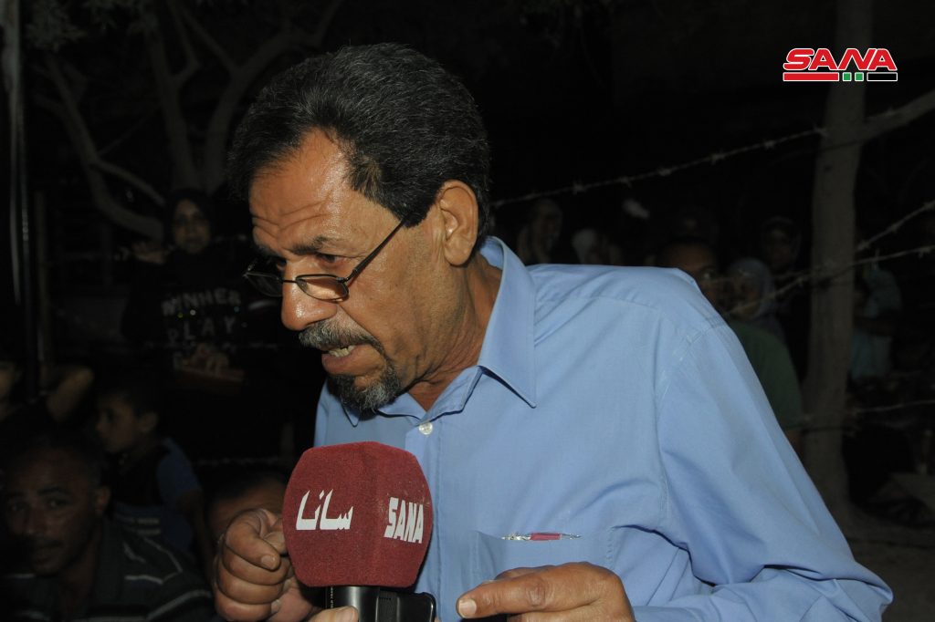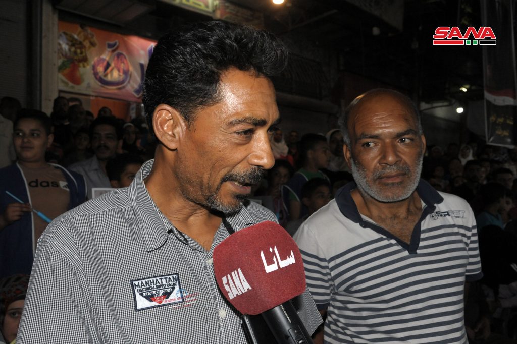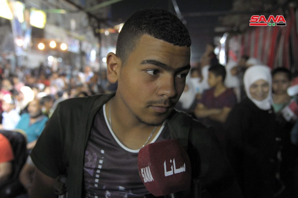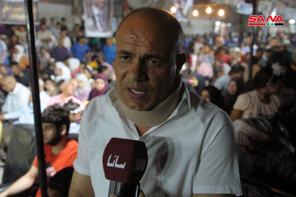 كاميرا سانا رصدت أراء عدد من المواطنين المشاركين بالفعالية حيث قال والد الشهيد خالد الحسن من عشيرة الحاج علي من بلدة البطيحة في الجولان المحتل “من حقنا أن نفرح ونقيم الأفراح باختيارنا الصحيح لقائد الوطن الذي حقق أمال الأمة”.