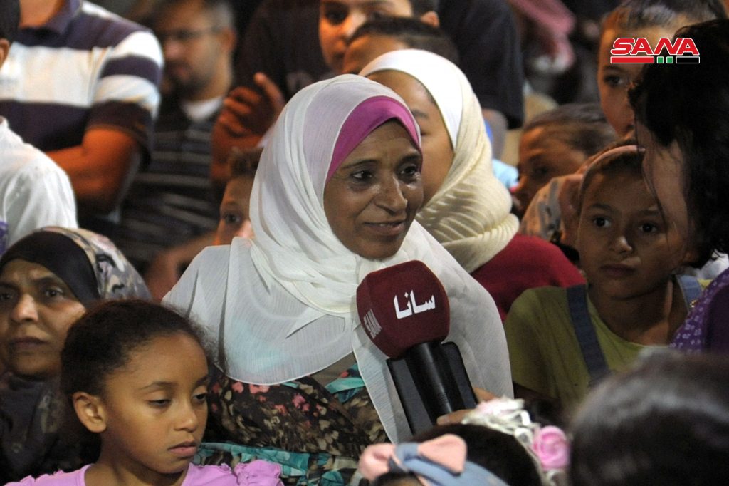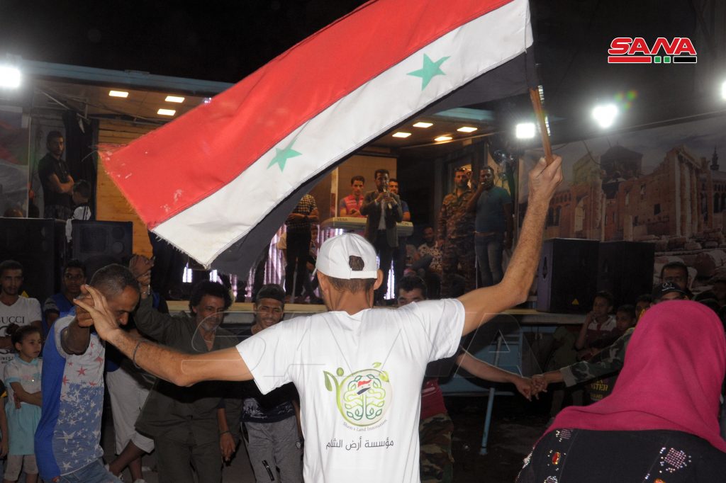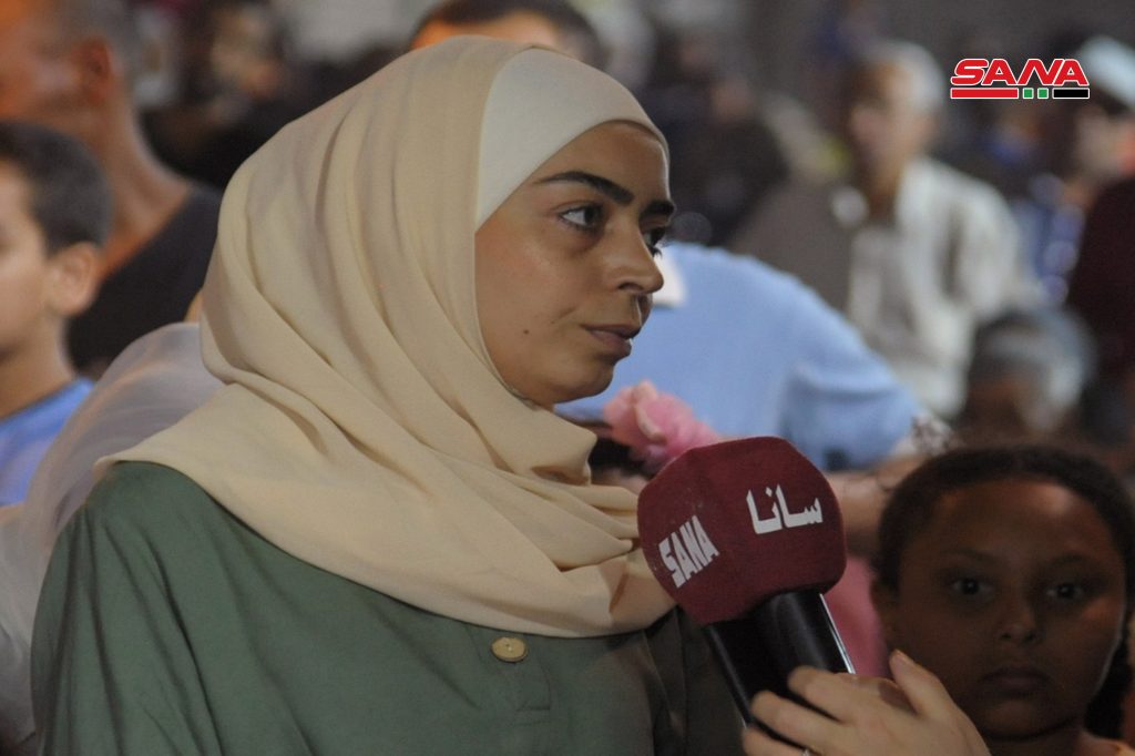 أما رهام نايف من أهالي الجولان المحتل فقالت نبارك للرئيس الأسد انتصاره المؤزر ضد أعداء الوطن ونحن بدورنا نعاهده أن نبقى أوفياء كما بينت نجاح عوض وعبير محمود من مخيم الوافدين أن السوريين يحصدون اليوم اليوم ثمرة انتصارات الجيش العربي السوري وتضحياته الجسام في الدفاع عن الوطن.