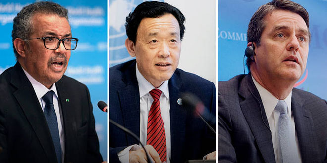 ونقلت وكالة فرانس برس عن مدير منظمة الأمم المتحدة للأغذية والزراعة فاو كو دونغيو ومدير منظمة الصحة العالمية تيدروس أدهانوم غيبرييسوس ومدير منظمة التجارة العالمية روبيرتو أزيفيدو قولهم في بيان مشترك: إن “الغموض حول توفر الغذاء يمكن أن يتسبب بموجة قيود على التصدير والتي قد تتسبب بدورها في نقص في السوق العالمية”.