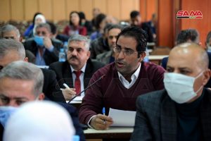 وقال: إن “مادة الميلاس تستخرج من الشوندر السكري لتصنيع الخميرة لهذا تم التخطيط لزراعة 5 آلاف هكتار في منطقة الغاب خلال الموسم القادم ويتم حالياً توزيع البذار للفلاحين إلى جانب تشغيل شركتي شمرا وزنوبيا لصناعة الألبسة في حلب وتجهيز صالة لعرض منتجاتهما وتوقيع عقد مع وزارتي الصحة والداخلية لتأمين اللباس لعمال الشركتين مع تواصل العمل لتشغيل المعامل المدمرة في حلب والرقة عبر التشاركية”.