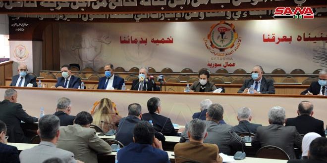 رئيس مجلس الوزراء المهندس حسين عرنوس نقل في مستهل حديثه أمام أعضاء المجلس تحية ومحبة السيد الرئيس بشار الأسد للطبقة العاملة على امتداد الوطن والتي كانت رديفاً لقواتنا المسلحة في حربها ضد الإرهاب من خلال صمودها وإصرارها على استمرار العملية الإنتاجية مؤكداً أن الحكومة لم تدخر جهداً لتحسين الواقعين الخدمي والمعيشي واستمرار العملية الإنتاجية وتأمين المتطلبات الأساسية للمواطنين وتحسين واقع الليرة وتحقيق استقرار سعر الصرف وضبط الأسواق وضمان توافر المواد الرئيسة فيها.