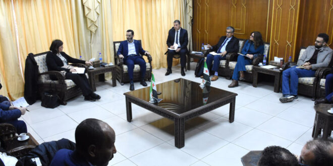 بحث المكلف تسيير أعمال هيئة التخطيط والتعاون الدولي مصعب بدوي مع مدير المركز الإقليمي في برنامج الأمم المتحدة الإنمائي بالأردن “يو إن دي بي” الدكتورة ماري قعوار، والوفد المرافق خطة العمل المستقبلية لإطلاق العمل التنموي في سوريا للعام الجاري، وفق الأولويات والاحتياجات.