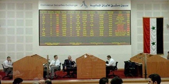 أغلقت جلسة تداول سوق دمشق للأوراق المالية اليوم بعد تداول 56188 سهما موزعة على 20 صفقة بقيمة تجاوزت 515ر7 ملايين ليرة سورية وانخفض المؤشر 44ر3 نقاط وأغلق على قيمة 95ر1214 نقطة وبنسبة تغير سالبة قدرها 28ر0 بالمئة.