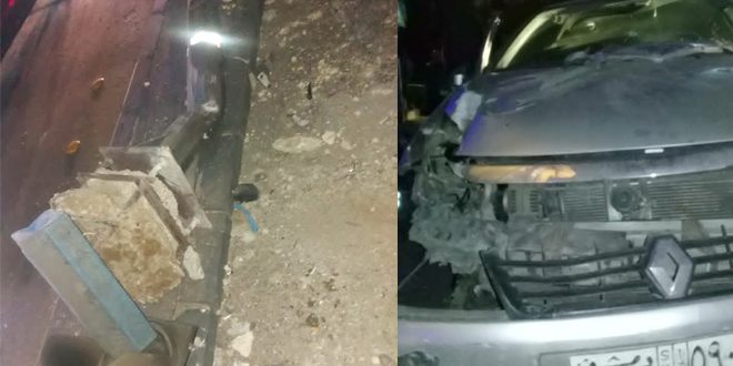 تدهورت سيارة سياحية نوع رينو واصطدمت بعمود كهربائي في منصف الطريق تحت جسر السيد الرئيس بدمشق دون وقوع اصابات.