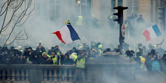 وكانت الشرطة الفرنسية استخدمت القنابل الغازية والمسيلة للدموع ونفذت حملة اعتقالات خلال قمعها الاحتجاجات الشعبية التى تقودها حركة “السترات الصفراء” في باريس وعدد من المدن الفرنسية السبت الماضي وذلك للأسبوع الثامن على التوالي ضد سياسات الرئيس ايمانويل ماكرون.