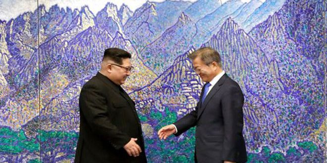 وكان رئيسا الكوريتين عقدا يوم الجمعة الماضي اجتماع قمة بينهما في قرية بانمونجوم الحدودية واكدا في بيان مشترك عزمهما على افتتاح عصر جديد للسلام المستدام والمصالحة بين البلدين ووضع حد للحرب فى شبه الجزيرة الكورية وانهاء عهد الانقسام والمواجهة في أسرع وقت ممكن.