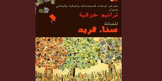 يفتتح في دار الأسد للثقافة والفنون عند الساعة الخامسة من يوم الخميس المقبل معرض لوحات فسيفسائية وخزفية وقيشاني بعنوان “ترانيم خزفية” للفنانة التشكيلية سناء فريد وذلك في قاعة المعارض بالدار ويستمر لغاية الـ 18 من الشهر الحالي.