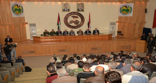وأكد عضو القيادة القطرية لحزب البعث العربي الاشتراكي عبد المعطي مشلب أن سورية لجميع أبنائها الذين بتكاتفهم يتحقق النصر ويعود الأمن والاستقرار للوطن مبينا ضرورة نشر ثقافة المواطنة والتسلح بالوعي لمواجهة الفكر الظلامي والتكفيري.