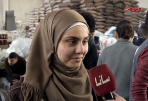 ريم قدور طالبة قسم الصيدلة رأت في التطوع عملا إنسانيا اعتاد عليه الشعب السوري، ونحن نعمل كفريق متكامل لتجهيز المساعدات بالشكل اللائق لتصل دون عناء إلى مستحقيها لاستخدامها بشكل مباشر.