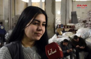 وبينت عضو قيادة فرع اتحاد شبيبة الثورة آمنة عبد الرحمن أن الفريق التطوعي من الشبيبة يشارك بالعمل التطوعي في مختلف مناطق المحافظة، منهم 50 متطوعاً يشاركون اليوم في عمليات تجهيز التبرعات في مستودع السورية للتجارة.