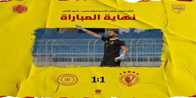 وسجل لتشرين خالد المبيض في الدقيقة 53 بينما سجل الفريق السعودي هدف التعادل في الوقت بدل الضائع.