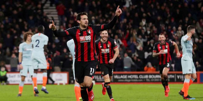 تعرض فريق تشيلسي لهزيمة كبيرة 4-صفر أمام مستضيفه بورنموث اليوم ليتلقى ضربة قوية لآماله في إنهاء الموسم ضمن المربع الذهبي في الدوري الإنكليزي الممتاز لكرة القدم.
