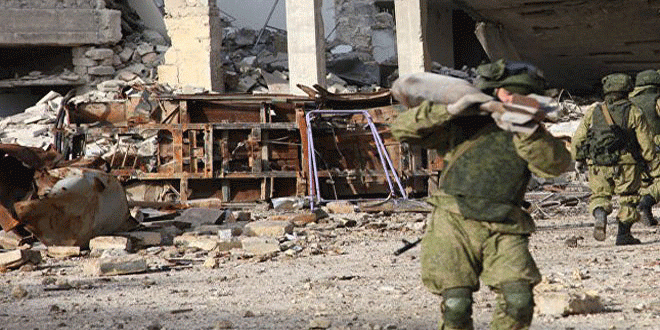 وأرسلت وزارة الدفاع الروسية في كانون الأول خبراء إزالة ألغام روسيين إلى سورية للمشاركة في إزالة الألغام في مناطق شرق حلب التي أعيد الأمن والاستقرار إليها مزودين بأحدث أنواع المعدات لنزع الألغام والوقاية من خطر انفجارها.