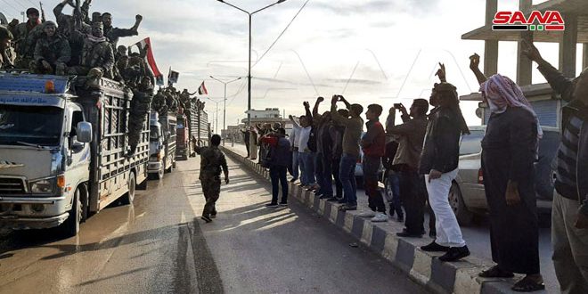 أهالي بلدة أبو راسين بريف تل تمر الشمالي الشرقي يرحبون بوحدات الجيش العربي السوري