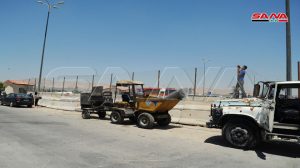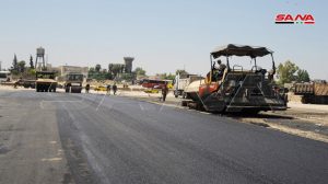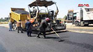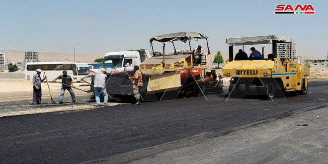 جهود مكثفة تبذلها ورشات مديرية الصيانة في محافظة دمشق لإنجاز الخدمات التي يحتاجها كراج البولمان بالقابون حيث تواصل تزفيت الساحة المحيطة به والبالغة مساحتها الإجمالية 11 ألف متر مربع وتركيب شبك معدني حول الكراج.