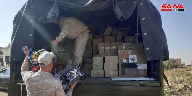 وتضمنت المساعدات بعض الأدوية الطبية لمشفى بصرى الشام الوطني وحقائب مدرسية والبسة شتوية وبعض المستلزمات التي تخدم العملية التعليمية.