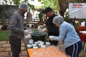 ممثلة جمعية ساعد الخيرية بطرطوس نور سلهب أوضحت أن الجمعية التي تأسست منذ نحو عشر سنوات في محافظة دمشق، وأطلقت شعار “خسا الجوع” متواجدة هذا العام في محافظتي حلب واللاذقية إلى جانب دمشق، وتعنى بالشأن الإنساني والتطوعي، مبينة أن وجبات الإفطار تقدم أيضاً لأسر الشهداء والجرحى.