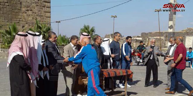 كرمت اللجنة التنفيذية للاتحاد الرياضي بدرعا بالتعاون مع المجتمع المحلي ببصرى الشام الأبطال الفائزين بالمراكز الأولى لألعاب القوى ببطولة الأندية التي أقيمت في محافظة اللاذقية على مستوى الجمهورية.