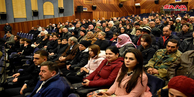 تقديرا لتضحيات أبنائهم في سبيل الدفاع عن الوطن وعزته ووحدته وسيادته كرمت وزارة الدفاع اليوم أسر 140 من شهداء الجيش العربي السوري خلال حفل أقيم على مسرح دار الثقافة بحمص.