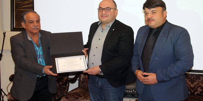 من جانبه ثمن أمين فرع دمشق لحزب البعث العربي الاشتراكي حسام السمان جهود الطبيبين المكرمين ورأى أن التفوق حصيلة جهد الطلاب والبيئة المناسبة التي وفرها الأهل والفرص المتكافئة والأدوات المناسبة التي قدمها الوطن للجميع.