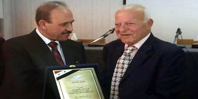 رئيس اتحاد الكتاب العرب الدكتور نضال الصالح قال في كلمة له: الآن ونحن نكرمك إنما نكرم قيمة عالية وغالية قيمة الوفاء للذين زرعوا فأحسنوا الزرع والذين بنوا فأحسنوا البناء وكتبوا فأحسنوا الكتابة ووفوا الوطن فأحسنوا الوفاء وإنما نود توجيه رسالة إلى كل من تعنيه الثقافة رسالة مبتدؤها وخبرها تقدير الجديرين بالتقدير من أدبائنا وكتابنا الذين كان لهم فضل الريادة والـاسيس والبناء”.