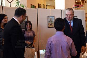 ضمن فعاليات اليوم الأخير للاجتماع الخامس السوري الروسي المشترك لمتابعة المؤتمر الدولي حول عودة اللاجئين والمهجرين السوريين, كرم وزير الاتصالات والتقانة في مدينة ريازان الروسية أوليانف أندري يويفيتش الطلاب العشرة الفائزين في مسابقة الرسم “روسيا في عيون السوريين” التي عقدت في المدينة وشارك فيها الطلاب السوريون افتراضياً، وذلك خلال حفل أقيم في دار الأوبرا بدمشق.