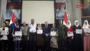 كرمت محافظة دير الزور اليوم 50 طالباً وطالبة من ذوي الشهداء وجرحى الوطن والطلاب الحائزين المراتب الأولى في شهادتي التعليم الأساسي والثانوية بفروعها المختلفة.