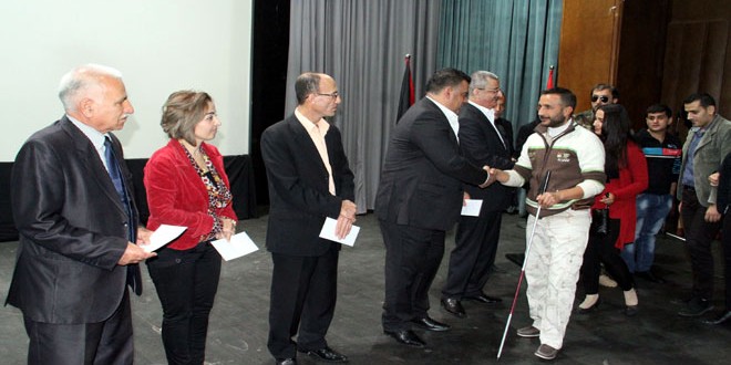 تقديرا لتضحياتهم في سبيل الدفاع عن الوطن كرمت جمعية البراءة لرعاية المكفوفين في طرطوس اليوم 30 من جرحى الجيش العربي السوري ذوي الإعاقات البصرية وأعضاء الجمعية المكفوفين وذلك خلال حفل بالمركز الثقافي.