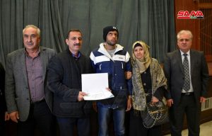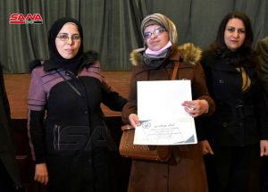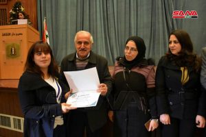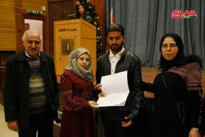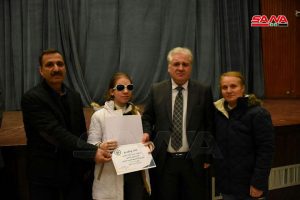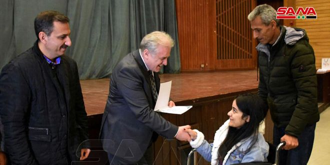 كرمت محافظة حمص اليوم 42 طالباً متفوقاً بالشهادات العامة والمرحلة الجامعية من ذوي الإعاقة على مسرح دار الثقافة بحمص.