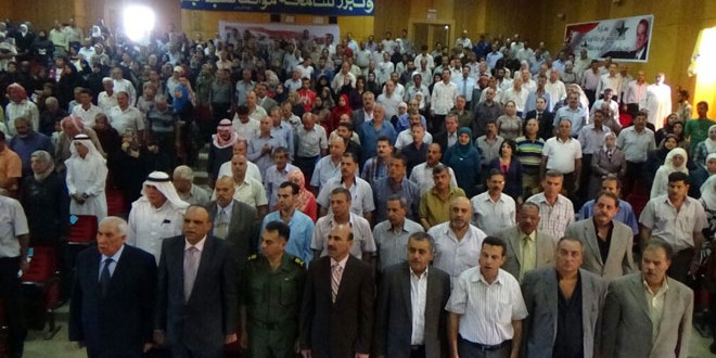 وذكر محافظ درعا محمد خالد الهنوس أن التكريم شكر لعطاءات وتضحيات الشهداء في سبيل سيادة سورية وعزة أبنائها داعيا أبناء المحافظة إلى التمسك بأرضهم في مواجهة الإرهاب وادواته.