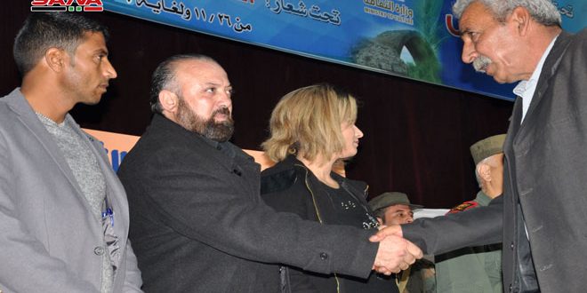 من جانبه عبر والد الشهيد محمود مجدل عن اعتزازه بتضحيات الشهداء لافتا إلى أنه: “لولاهم لما استطعنا أن نجتمع اليوم وأن حالة الأمن والاستقرار التي نعيشها هي ثمرة للتضحيات الكبيرة التي قدمها أبطال الجيش العربي السوري”.