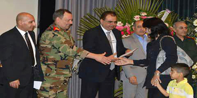 حضر التكريم رئيس مجلس محافظة طرطوس المهندس ياسر ديب وفعاليات شعبية ونقابية وحزبية .
