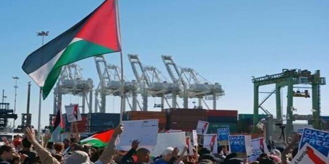 تنديداً بالعدوان الأخير على الفلسطينيين… المئات يحتجون على رسو سفينة شحن إسرائيلية في ميناء أوكلاند الأمريكي