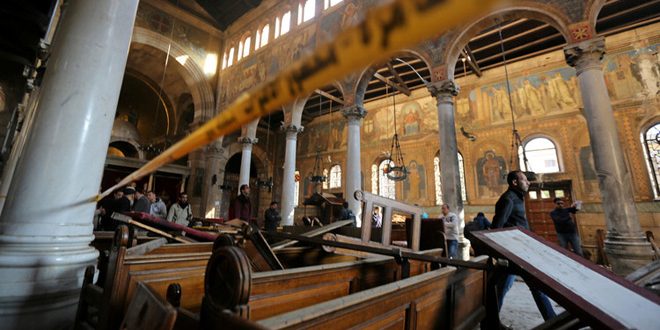 وكان 25 شخصا قتلوا وأصيب 49 آخرون نتيجة تفجير إرهابي وقع أول أمس في الكنيسة البطرسية الواقعة في محيط الكاتدرائية الأرثوذكسية في حي العباسية بالقاهرة.